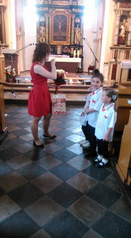 29 czerwca w kościele św. Jakuba Ap. w Niewieścinie odbył sie koncert chóru dziecięcego "Biedronki", podczas ktorego nasza członkini Młodego Kolpinga, Angelika Buchholz, dyrygowala chórem. Byla to jej jedna z części pracy licencjackiej, którą broni na UKW w Bydgoszczy. Angelika od 10 lat śpiewa w tym chórze, a od kilku dyryguje nim. Jest bardzo związana z tą grupą młodzieżową, a dyrygowanie jest jej pasją. Po koncercie były kwiaty, gratulacje i łzy wzruszenia. Dyplomantka zaprosiła Biedronki na poczęstunek do ogrodów świetlicowych.